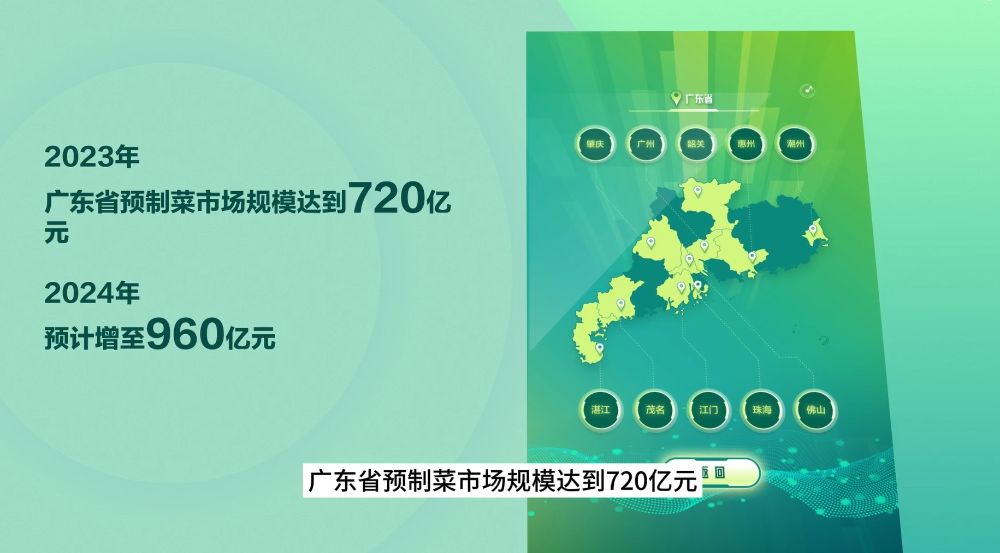 作为预制菜产业策源地,广东以其卓越的生态构建力、创新驱动力和国际化视野,打造了多个全国第一。2023年,广东省预制菜市场规模达到720亿元,2024年预计增至960亿元。