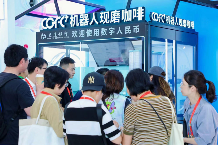 咖啡机器人、健康体检仪、数币盲盒机……展馆内,多个数字人民币智能设备人气十足,前来尝鲜数字人民币支付体验的观众络绎不绝。