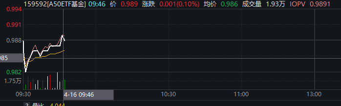 相关ETF方面,A50ETF基金(159592)早盘低开,盘中反弹,截至发稿翻红,成交额近3000万元,换手率近3%,盘中交投活跃。资金流向方面,Wind数据显示,该ETF连续5日获资金净流入,累计净流入额超8600万元。