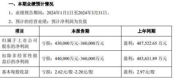 4月23日晚间,天齐锂业发布2024年一季度业绩预告:预计一季度净亏损36亿元-43亿元,去年同期净利润48.75亿元。
