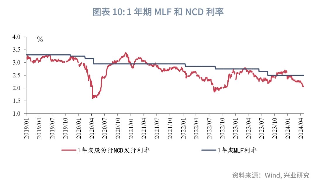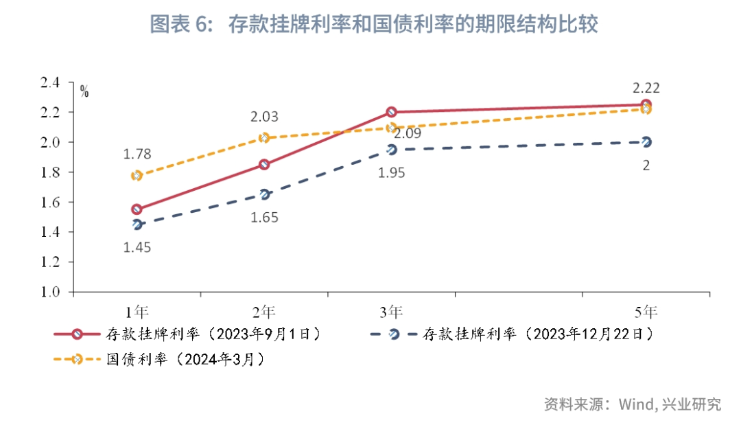 一是降低存款利率,可能在下半年再次下调存款利率,并带动LPR下调。2023年12月,国有大行下调挂牌利率;此后,2024年2月,5年期LPR下调25bp,反映了存款利率下调对负债成本的影响;在国有大行下调存款利率之后,股份行、区域银行相继下调存款利率。2024年,银行存款利率仍可能继续下调,尤其是长期限的定期存款利率下调幅度可能较大,除下调存款挂牌利率之外,也可以考虑适时下调存款利率上限或存款基准利率。从存款利率下调节奏来看,国有大行最快可能在下半年再次下调存款利率。