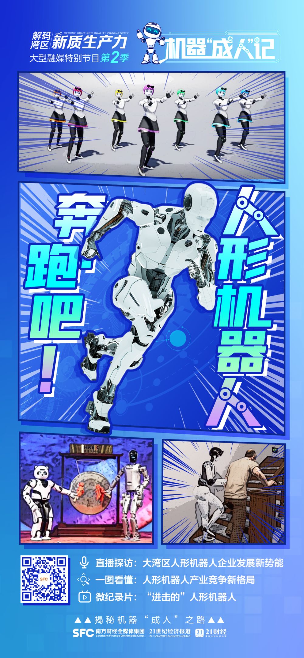 南方财经全媒体集团 21财经客户端聚焦解码大湾区新质生产力,重磅推出《机器“成人”记》大型融媒特别节目,深入采访调研大湾区人形机器人行业公司,对话企业管理者、技术团队、行业专家等,共同探讨人形机器人行业如何破局突围、创新发展,助力大湾区新质生产力加速培育,为中国经济高质量发展注入澎湃动能。