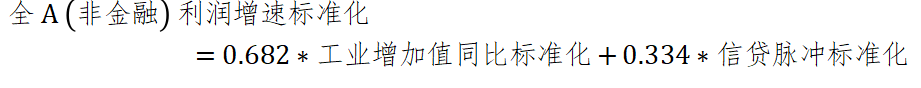 针对未发生季度,与前文类似,充分利用宏观经济指标与企业盈利之间的固有关联,通过已发现的逻辑关系把宏观分析师一致预期下的经济指标转化为全A企业盈利预测。
