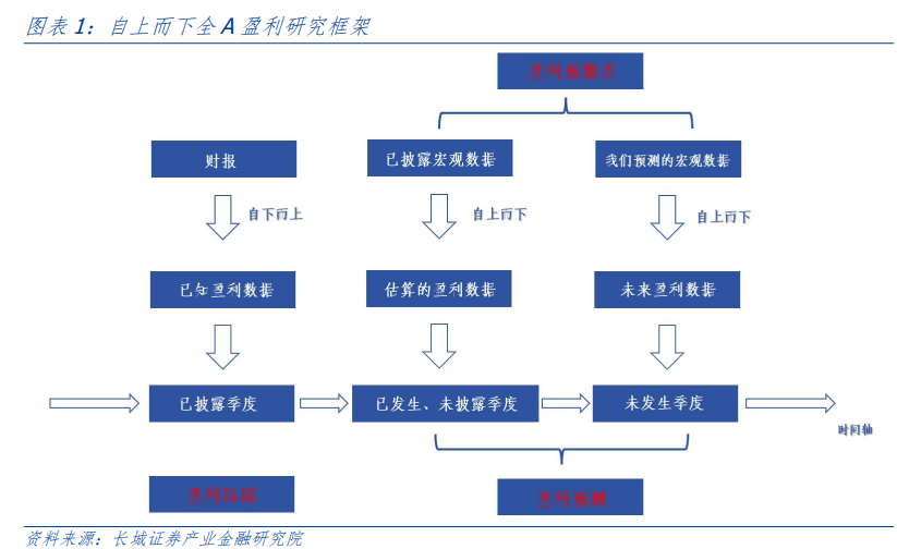 本文仅讨论全A盈利研究,针对全A整体业绩,推出自上而下全A盈利研究框架,框架包括盈利跟踪和盈利预测。