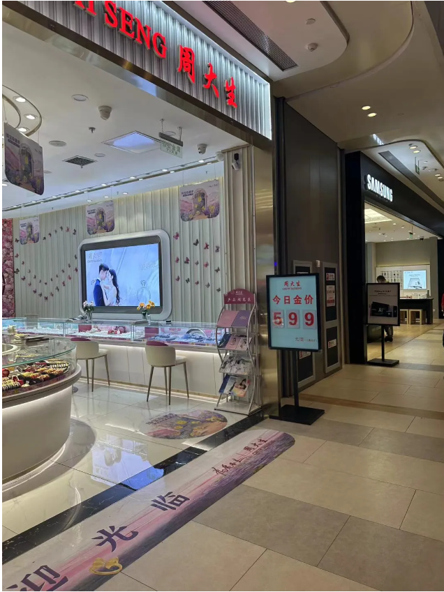 记者走访看到,包括周大生、中国黄金在内的多个品牌黄金目前报价重回“5时代”。“假期每克优惠100元,优惠后599元/克,工本费另算。假期期间,除了门店活动,商场针对购金也有优惠活动,假期购金人比较多。”周大生门店销售人员告诉中国证券报记者。