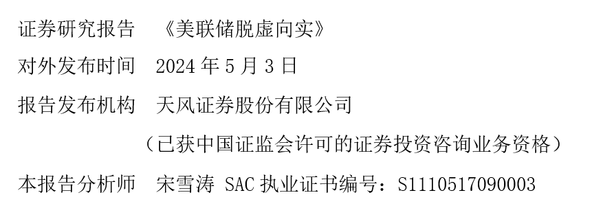 2024年5月的联储议息会议,利率水平如期并保持不变。但不降息不是重点,我们在4月1日报告《美联储,非必要,不降息》里已有判断,联储“没必要、没空间、没动力做实质性降息”;当前的重点是放缓缩表守护美元流动性。