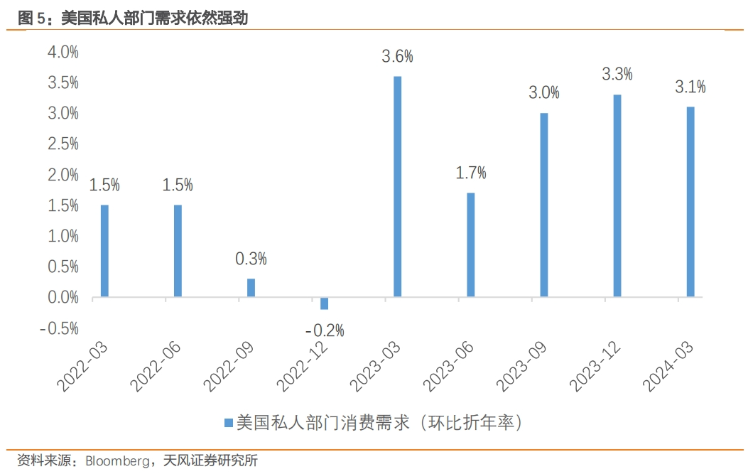 虽然美国一季度实际GDP增速明显低于预期,但除库存投资、政府支出和净出口的国内最终私人需求依然强劲增长3.1%,体现出美国经济依然处于相对高位水平。(详见4月26日报告,《美国,滞不明显,胀更确定》)