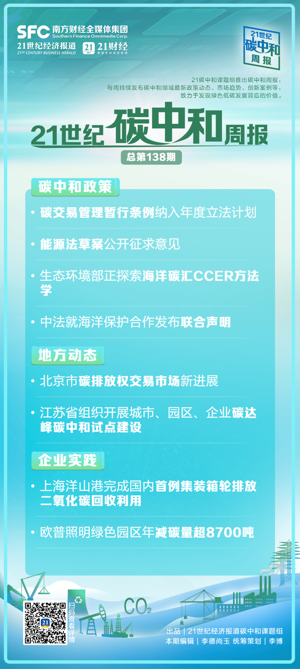 碳中和周报关注“双碳”领域的最新前沿动态,包括碳中和政策、地方动态、企业实践等。我们将通过精选每周碳中和领域的重大事件,并进行点评的方式,提供一个及时全面的碳中和信息平台。