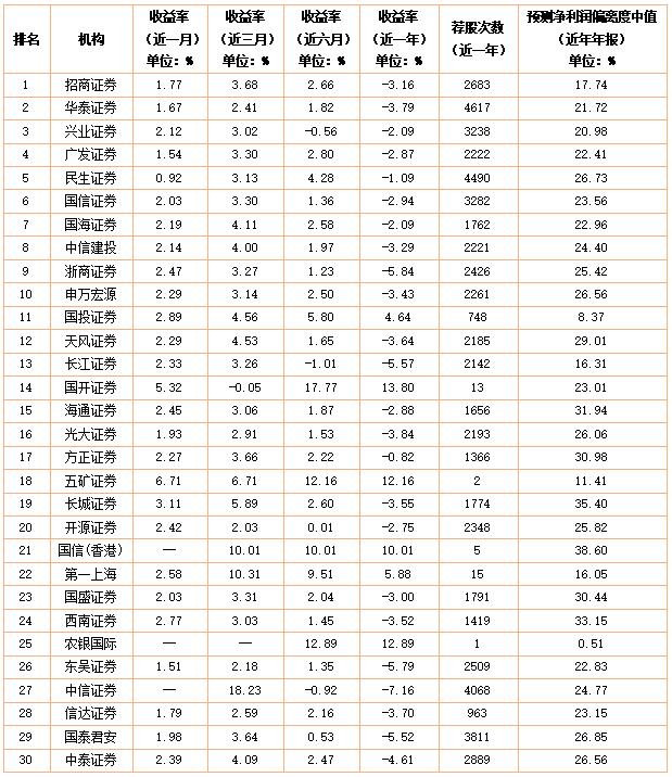 值得一提的是4月券商研究实力榜排名前十名的,最近一年荐股都超过1000次。与上个月排名靠前的最近一年荐股多在100次以内形成鲜明对比。而从排在第4名至10名的广发证券、民生证券、国信证券、国海证券、中信建投、浙商证券、申万宏源不难看出,拥有更强大研究实力的大中型券商表现突出。