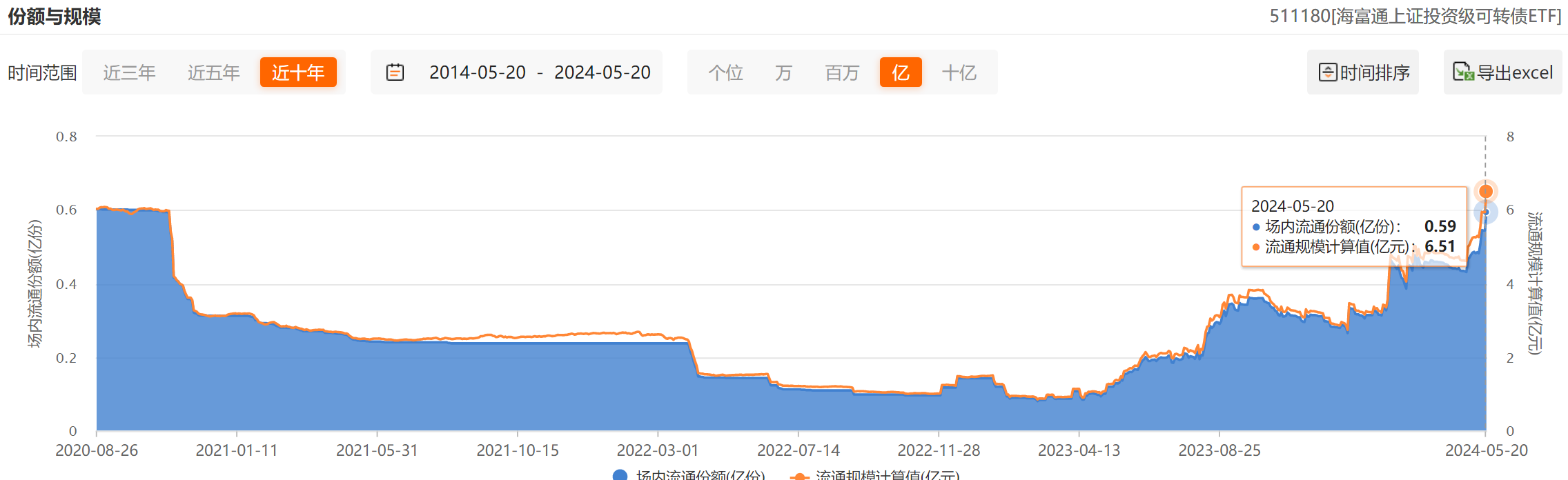 值得一提的是 ,债券ETF整体规模站上千亿元的同时,不少债券ETF规模创新高。其中,上证可转债ETF(511180)最新规模为6.51亿元,创历史新高,年内回报率达5.59%。