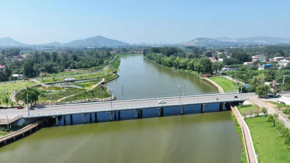在15公里之外的市中区西王庄镇谭家河畔,绿树郁郁葱葱,河面水波荡漾,岸边蔷薇和月季花正竞相开放,村民们三三两两,在水边公园散步。