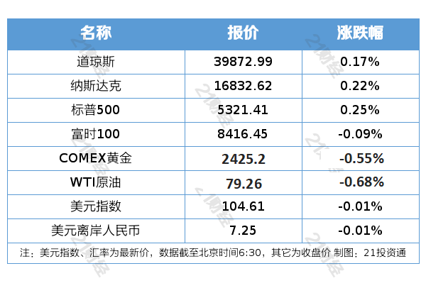 1、美股三大指数集体收涨,纳指、标普500指数创收盘新高。科技巨头多数走强,苹果涨0.69%、微软涨0.87%、特斯拉涨6.66%、英伟达涨0.64%。热门中概股普跌,纳斯达克中国金龙指数跌2.27%。