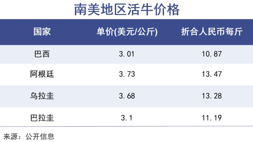 众所周知,南美是全世界活牛养殖最发达的地区之一,其养殖成本因为规模化和集中化,养殖成本为全球最低之一地区。但今年以来,我国大多数地区的价格在9.5-10元一斤的范围内,即使是一些品质较好的活牛,其价格也只是在11-12元一斤之间徘徊。这个价格已经处于全球最低位水平。