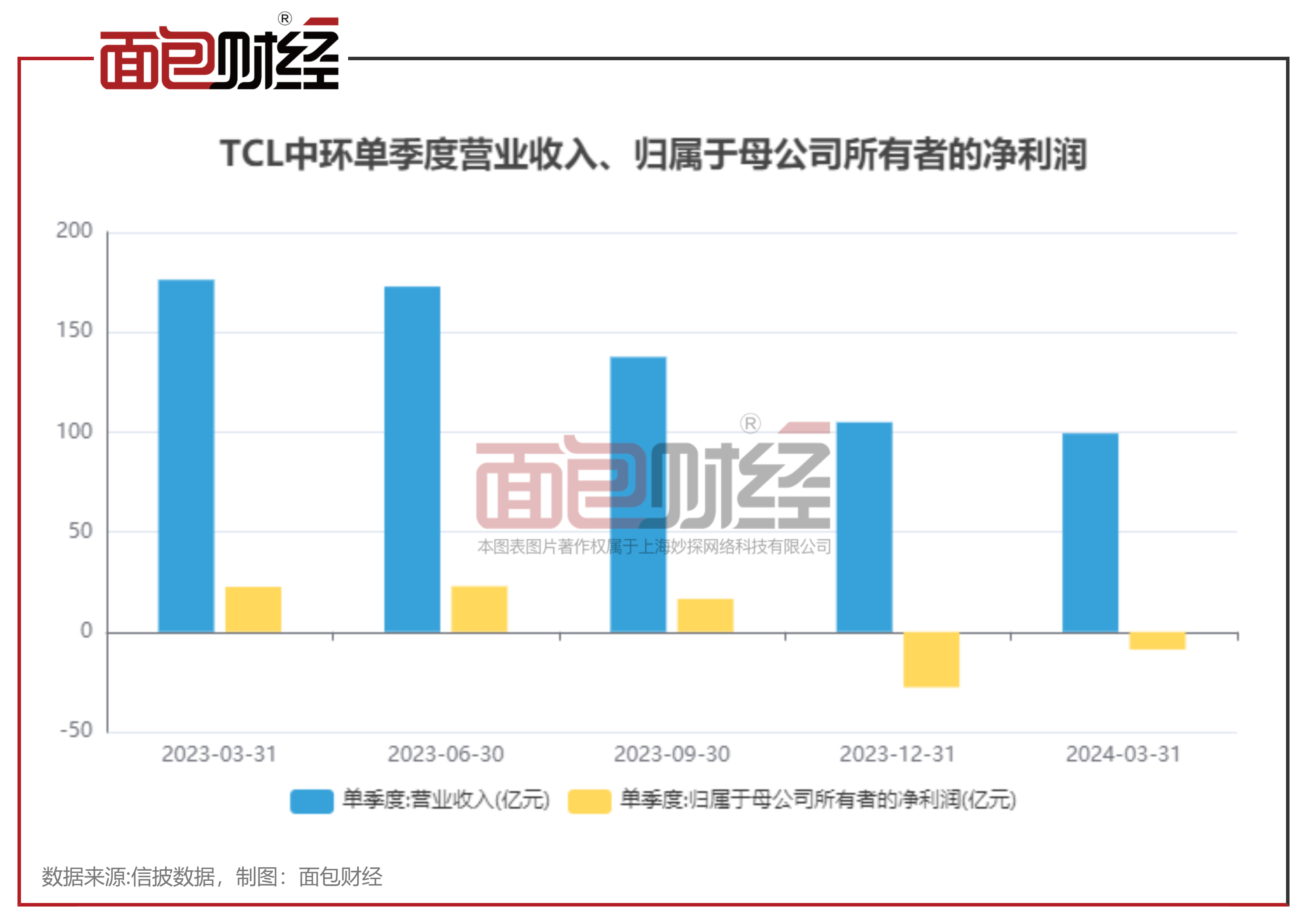 近日,TCL中环披露了2024年一季报。公司2024年一季度实现营收99.33亿元,同比下降43.62%;亏损8.79亿元,由盈转亏。
