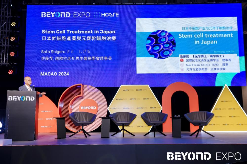“干细胞在人体内发挥功能时,其关键要素在于外泌体和生长因子。首先,外泌体在干细胞治疗中扮演着重要的角色,它们能够抑制炎症的发生,这对于预防慢性炎症具有显著意义。其次,生长因子,或称为增殖因子,在促进细胞再生和修复方面起着关键作用。例如,在受伤后,注射含有生长因子的干细胞可以促进皮肤再生,加速伤口愈合。”在BEYOND Expo上,国际抗老化再生医疗学会理事长佐藤茂分享日本干细胞产业及元齐干细胞治疗优势。