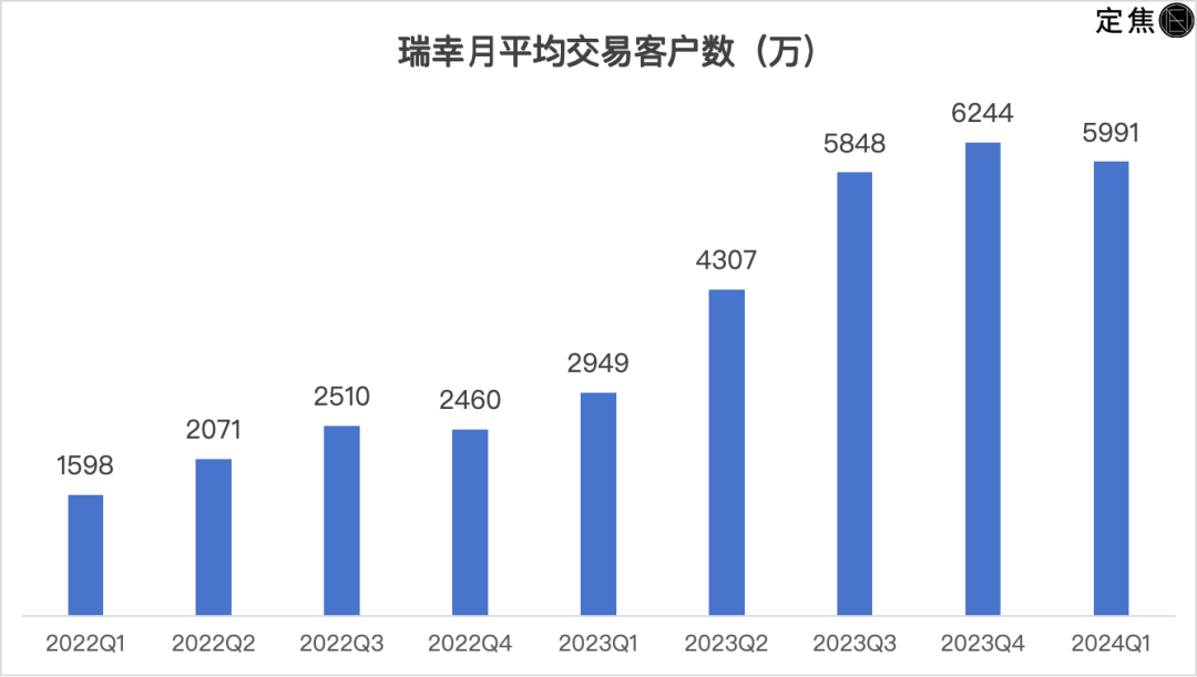 62亿元的营收首次超过星巴克中国,成为中国市占率第一的连锁咖啡品牌;瑞幸更加赚钱,做到了10亿净利润;月平均交易客户数同比翻倍,增速创下历史新高。