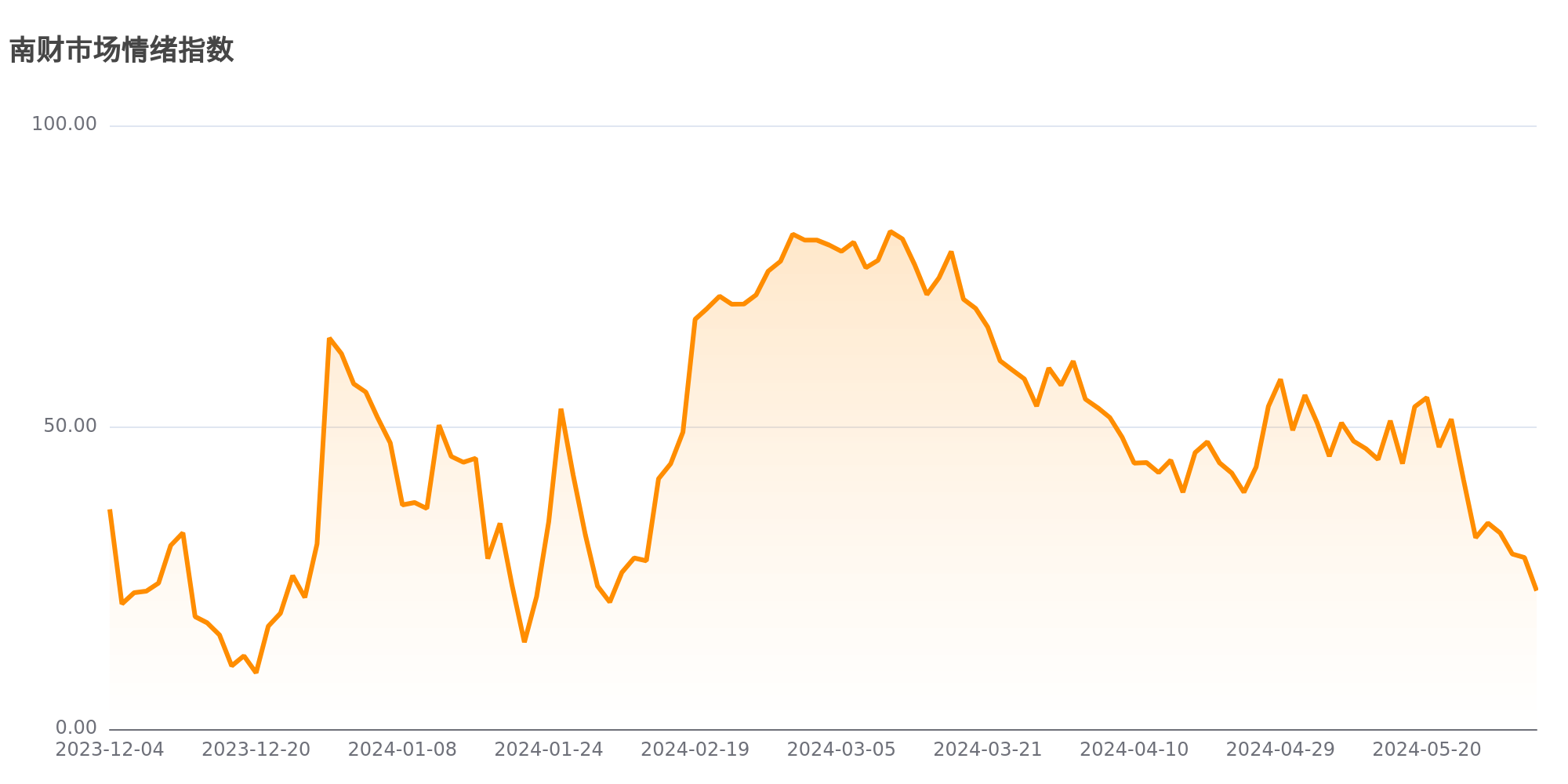 今日南财市场情绪指数为22.9,较前一交易日28.4大幅下跌,市场投资热度明显降低。