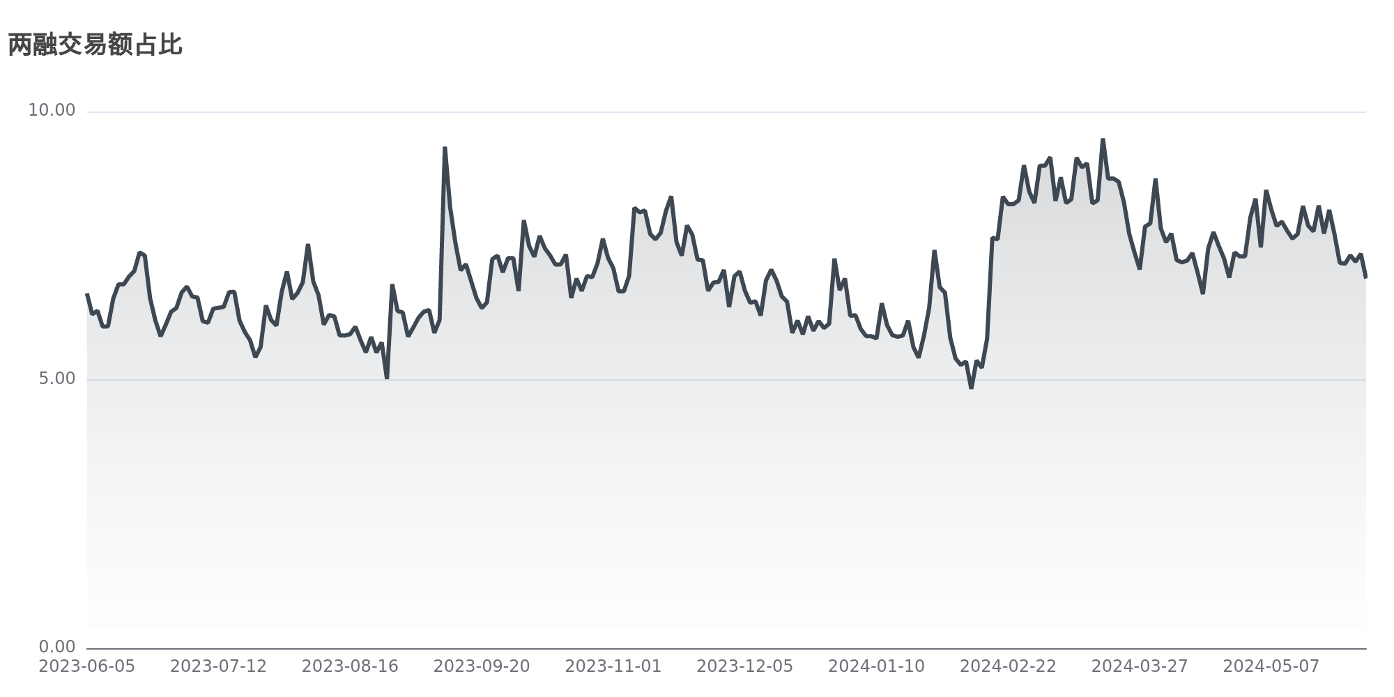 今日该指标值为6.89%,目前该指标处于近一年中立区间,说明投资者对A股持中立情绪。反映场内投资者借钱炒股的杠杆水平,该指标越高说明杠杆水平越高,即投资者认为当前市场较强,反之则说明投资者认为市场相对较弱,因而与上证指数存在较强的正相关性。