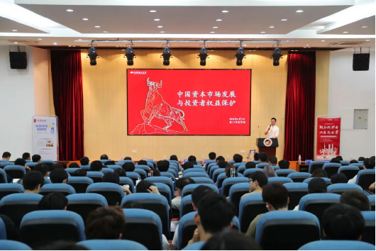 6月5日下午,由上海证券交易所、厦门证监局、厦门证券期货基金业协会和东莞证券主办,厦门华厦学院承办的《中国资本市场发展与投资者权益保护》讲座在华厦学院明德厅举行,该校商务与管理学院领导、系主任、专业负责人、财会金融专业骨干教师和200多名学生参加了本次讲座。上交所投服部讲师深情地回顾了在党领导下中国资本市场百年来的发展历程,介绍了上交所诞生、发展及未来的规划,深入浅出地分析了在上交所交易的股票、债券、基金、衍生品和公募REITs等各类证券产品的特点和市场概况。此外,上交所投服部讲师还着重分享了上交所在保护投资者方面做出的努力,提醒在场师生积极履行法律赋予证券投资者的权利,共同维护中国资本市场长期健康发展。