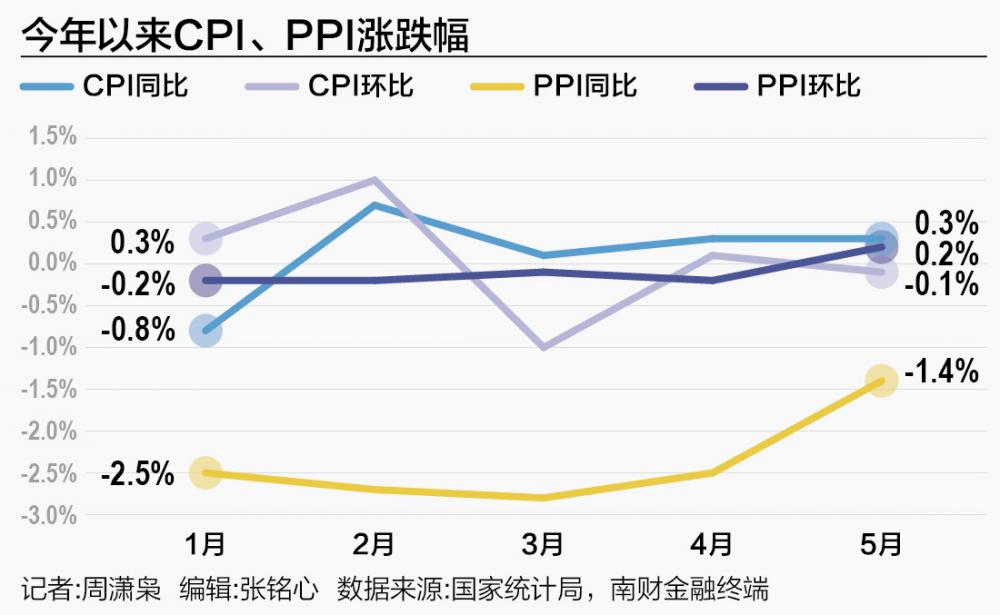 5月CPI同比上涨0.3%PPI降幅收窄 扩内需政策有提振但仍需发力