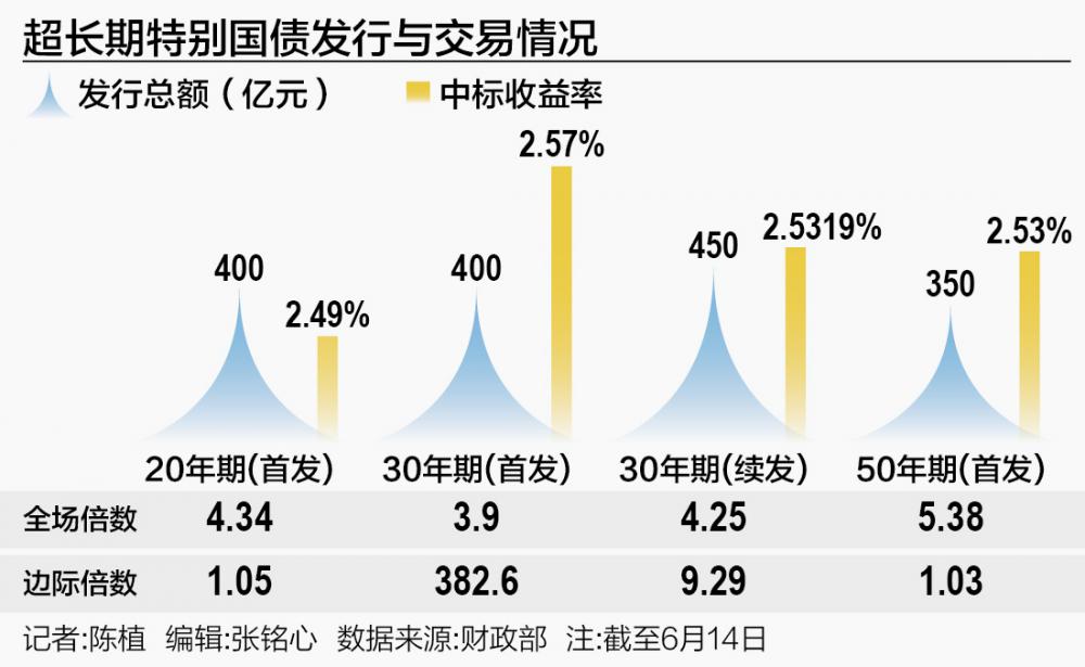 6月14日,财政部首发50年期特别国债,发行总额350亿元。