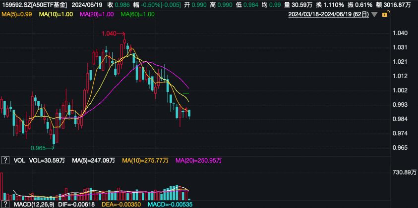 相关ETF方面,A50ETF基金(159592)截至发稿跌0.50%,成交额超3000万元,换手率1.11%,溢折率0.10%,早盘频现溢价交易。