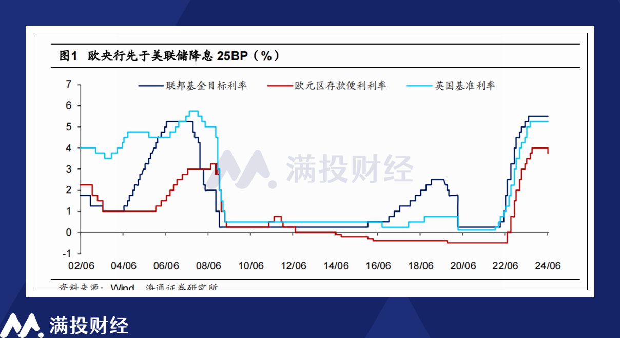 6月6日,欧洲央行宣布下调欧元区三大关键利率,降幅均为25个基点,存款便利利率、主要再融资利率、边际贷款利率分别下调至3.75%、4.25%和4.5%。这是欧央行自2022年7月开始加息以来的首次降息。尽管此前欧洲央行官员已经多次在公开讲话中透露了即将降息的意愿,但先于美联储执行降息,也反映出了一些需要注意的市场信号。