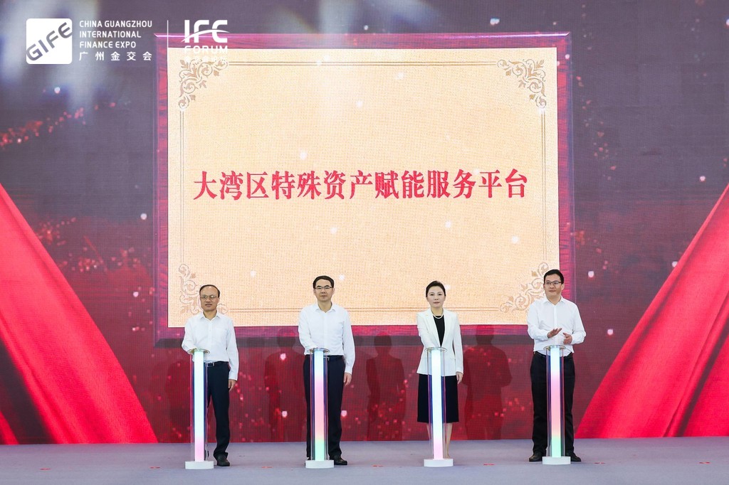 在本次论坛上,广州市人民政府副市长赖志鸿,广州市人民政府副秘书长孟昊,广州市委金融委员会办公室副主任邱亿通,广州交易集团有限公司董事长葛群为大湾区特殊资产赋能服务平台揭牌。