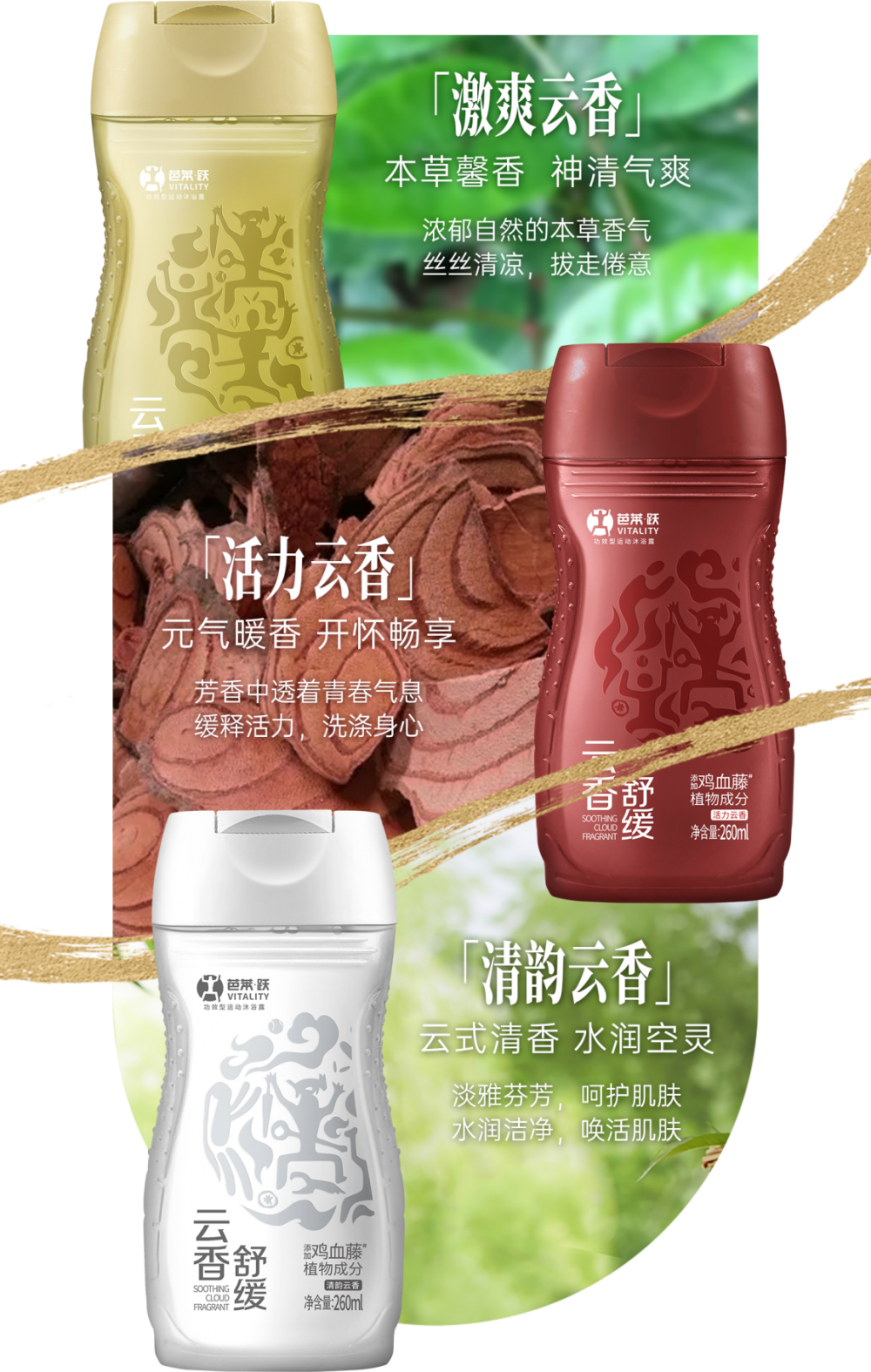 芭莱·跃不仅具备沐浴露基本的清洁功能,更侧重于肌肤的舒缓和修护。它首次提出了“三重云香舒缓”的沐浴体验,包括“清韵云香”、“激爽云香”和“活力云香”,每种香调都依托国际香水大师的灵感,为用户提供丰富的嗅觉享受,使沐浴成为一种身心放松的旅程。