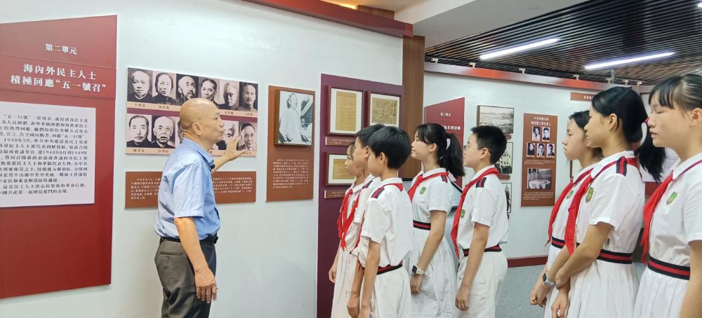 据悉,纪实展是根据珍贵的档案和资料,向穗港澳中小学生真实、生动、细致地再现了中华人民共和国国旗、国歌、国徽的诞生历程,讲述了新中国创建之初各党派团体、社会各界人士的爱国故事和历史贡献,旨在拓宽穗港澳中小学生爱国的深度及广度,进一步增加对国家的向心力。