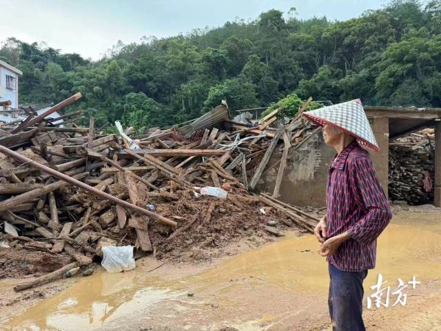 梅县区松源镇横坊村,阿婆家的老宅在洪水中垮塌。南方+ 张笛扬 拍摄