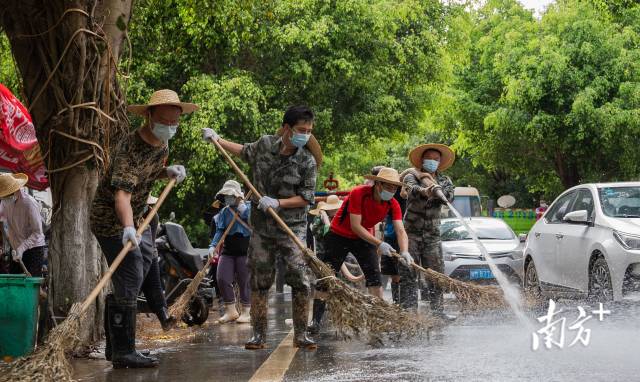 为了加快重建,松口镇从受灾较轻的20多个村抽调人手,每村8人支援清淤消杀,所有工作人员按8至10人的规模分成一支支突击队,由镇干部带队轮番上阵,“这队累了就换下一队,但机器不能停,老百姓还急着回家。”