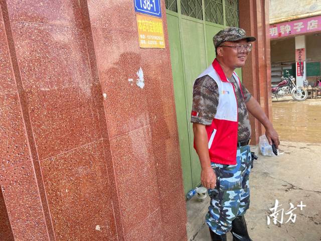 黄伟强是松口镇常务副镇长。一身迷彩服、一双黑雨靴、一件红白拼色马甲,是他这段时间从未更换的装扮。挽起袖子后,黄伟强被晒得黝黑的左臂上,几道初愈合的伤疤格外显眼。“抢险时刮伤的,没多大事。”连续多日高强度工作,黄伟强的嗓子有些沙哑,加上感冒鼻塞,说话时的声音低沉。