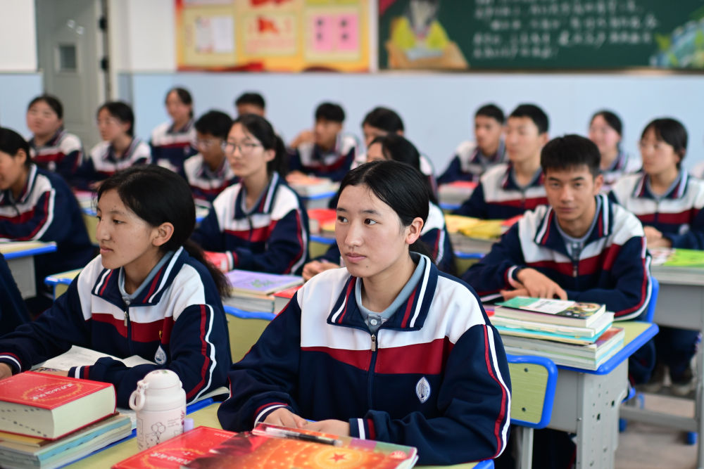 青海省西宁市果洛西宁民族中学学生在上课(2024年6月18日摄)。新华社记者 张龙 摄