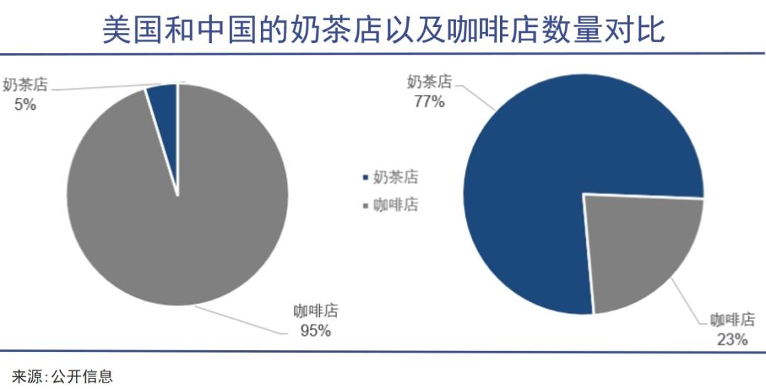 在中国市场,奶茶的销售量和消费频率早已大幅超过咖啡,现制茶饮中奶茶店占比达到77%。但在美国,喝奶茶仍旧是一个新兴风潮,美国奶茶店数量占比尚不足5%,且根据2022年美国饮品消费调查显示,美国消费者对汽水(18.7%)、咖啡(10.8%)、啤酒(9.9%)、饮用水(9.5%)的偏好均高于牛奶(7.8%)和茶水(5.4%)。