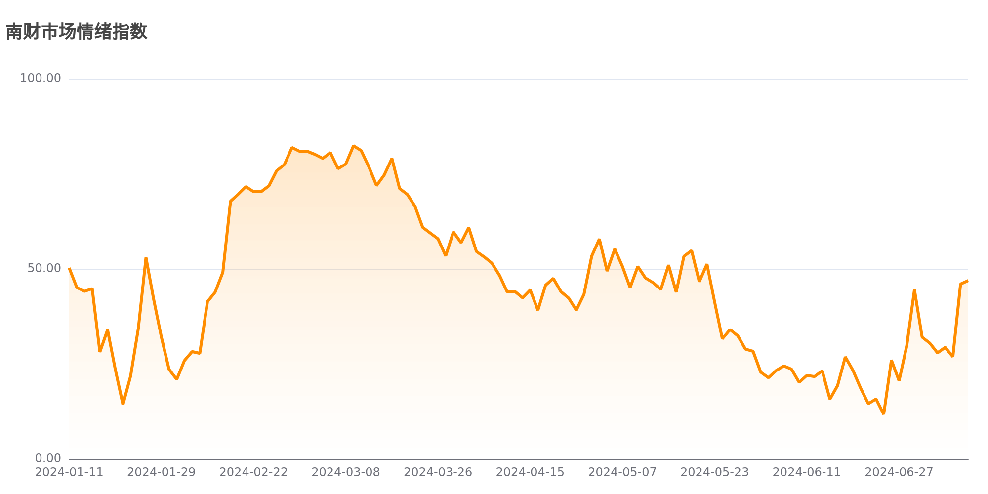 今日南财市场情绪指数为47.0,较前一交易日46.1基本不变,市场投资热度处于中立水平。
