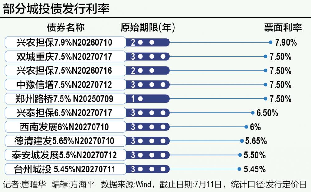 6月底另一家城投公司许昌市投资集团有限公司发行的一只2年期美元债“许昌投资9.5%N20260628”票面利率更是高达9.5%。许昌市投资集团有限公司为河南许昌市的城投公司,主体评级为AA+。还有多只城投公司发行的中资美元债票面利率超过8%。