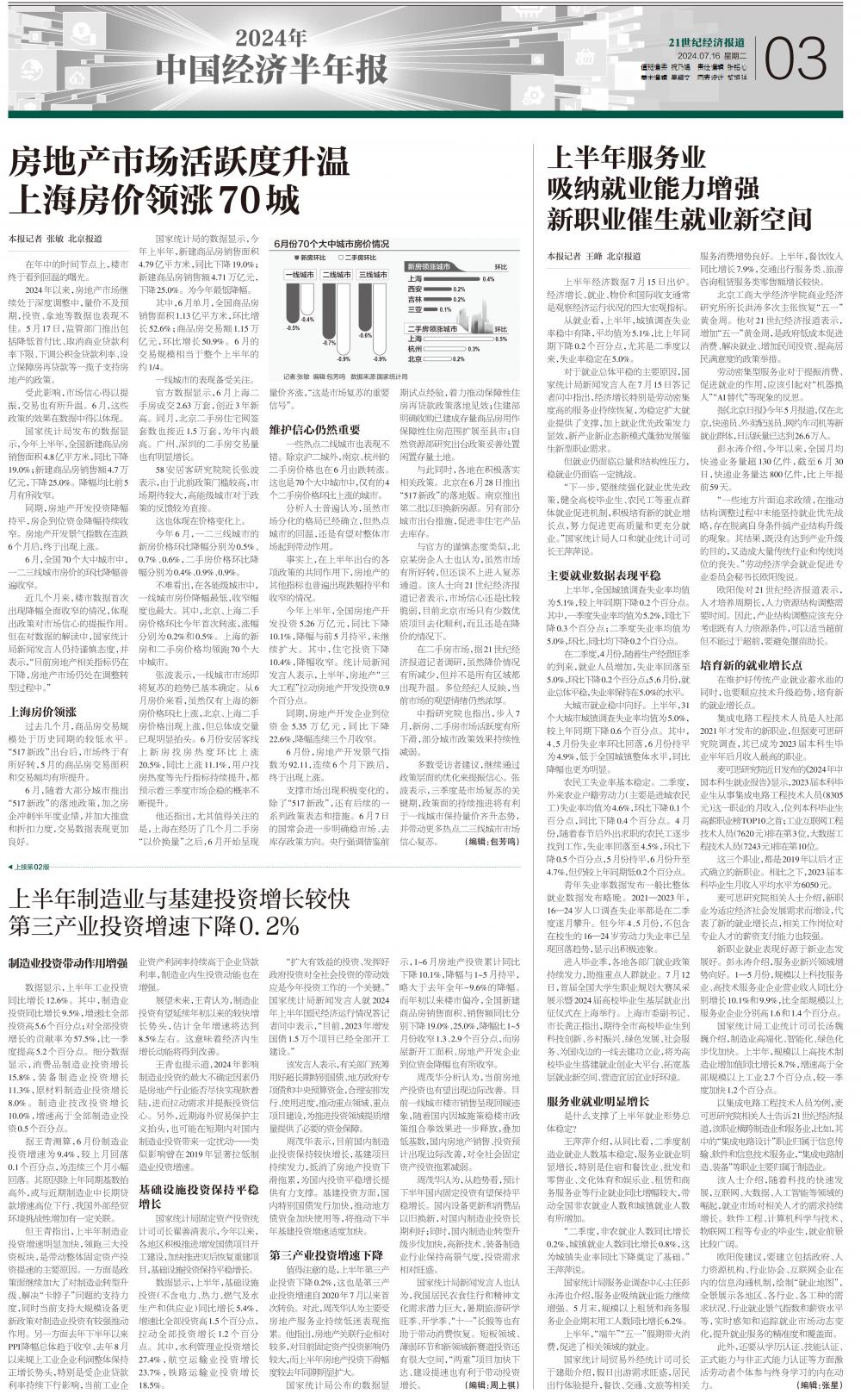 上半年制造业与基建投资增长较快 第三产业投资增速下降0.2%