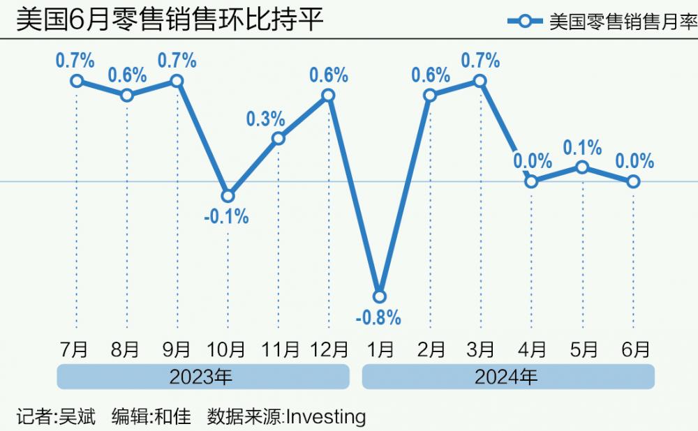 美东时间7月16日,美国商务部公布的数据显示,6月零售销售意外与上月持平,汽车经销商的销售下降被其他方面的普遍增长所抵消,显示出消费者的韧性,5月零售销售数据被上修。这缓解了人们对经济急剧放缓的担忧,增强了第二季度经济增长前景。