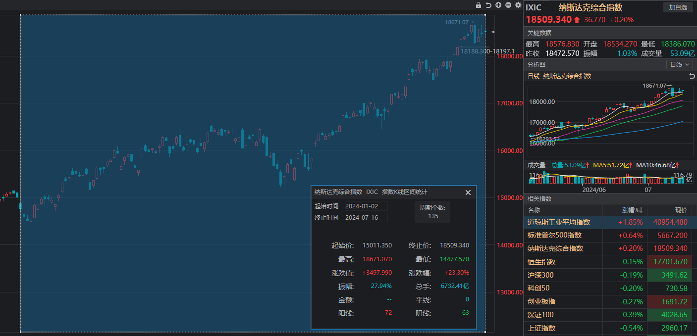 纳斯达克指数今年以来表现强势