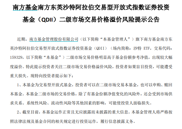 基金公司连夜发溢价公告提示风险