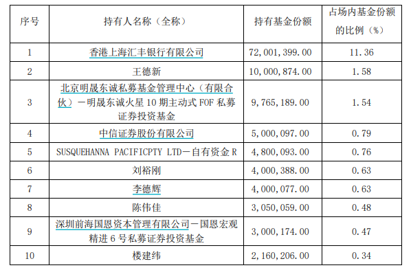 华泰柏瑞沙特ETF前十大持有人