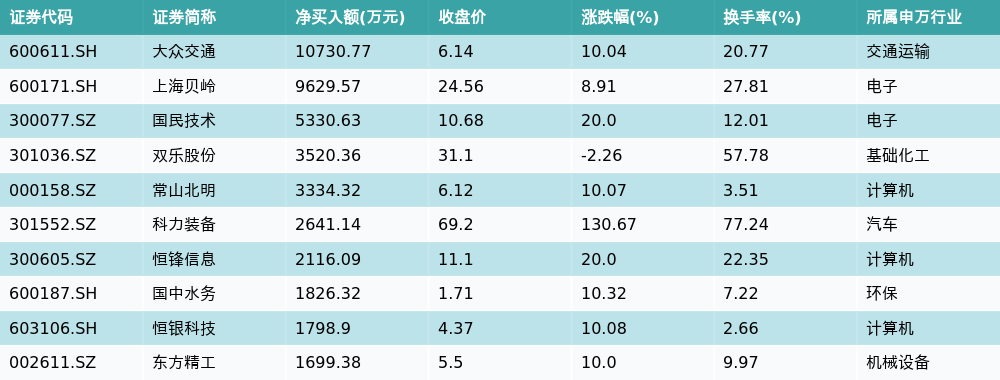 7月22日龙虎榜营业部净买入额前10详情见下表: