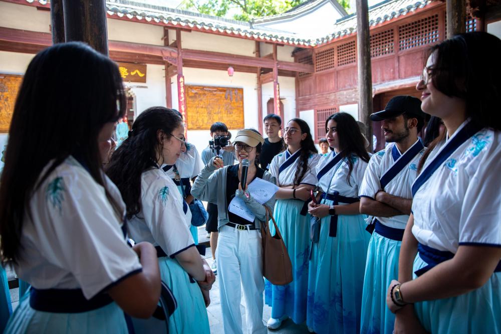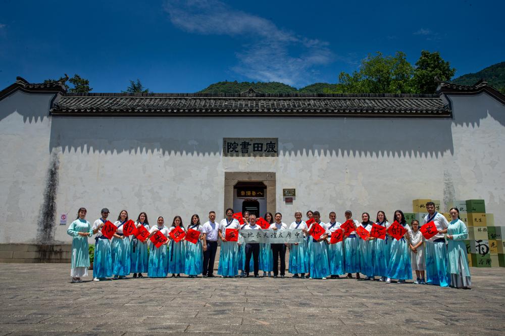 7月18日,浙江省金华市金华双龙风景旅游区鹿田书院迎来了一群身穿汉服的“洋面孔”,吸引了现场游客驻足观望,并用半生不熟的英文夸奖点赞。他们是来自义乌工商职业技术学院摩洛哥义乌商学院的青年学子们,与游客热情互动的同时,留学生们认真听取导游翻译讲解,兴奋地感受这座千年书院的悠久历史和灿烂的儒家文化。