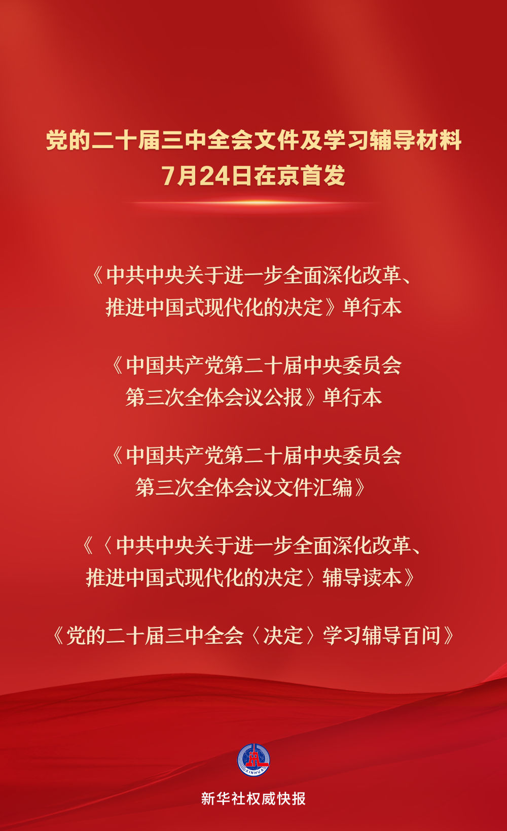 党的二十届三中全会文件及学习辅导材料7月24日在京首发