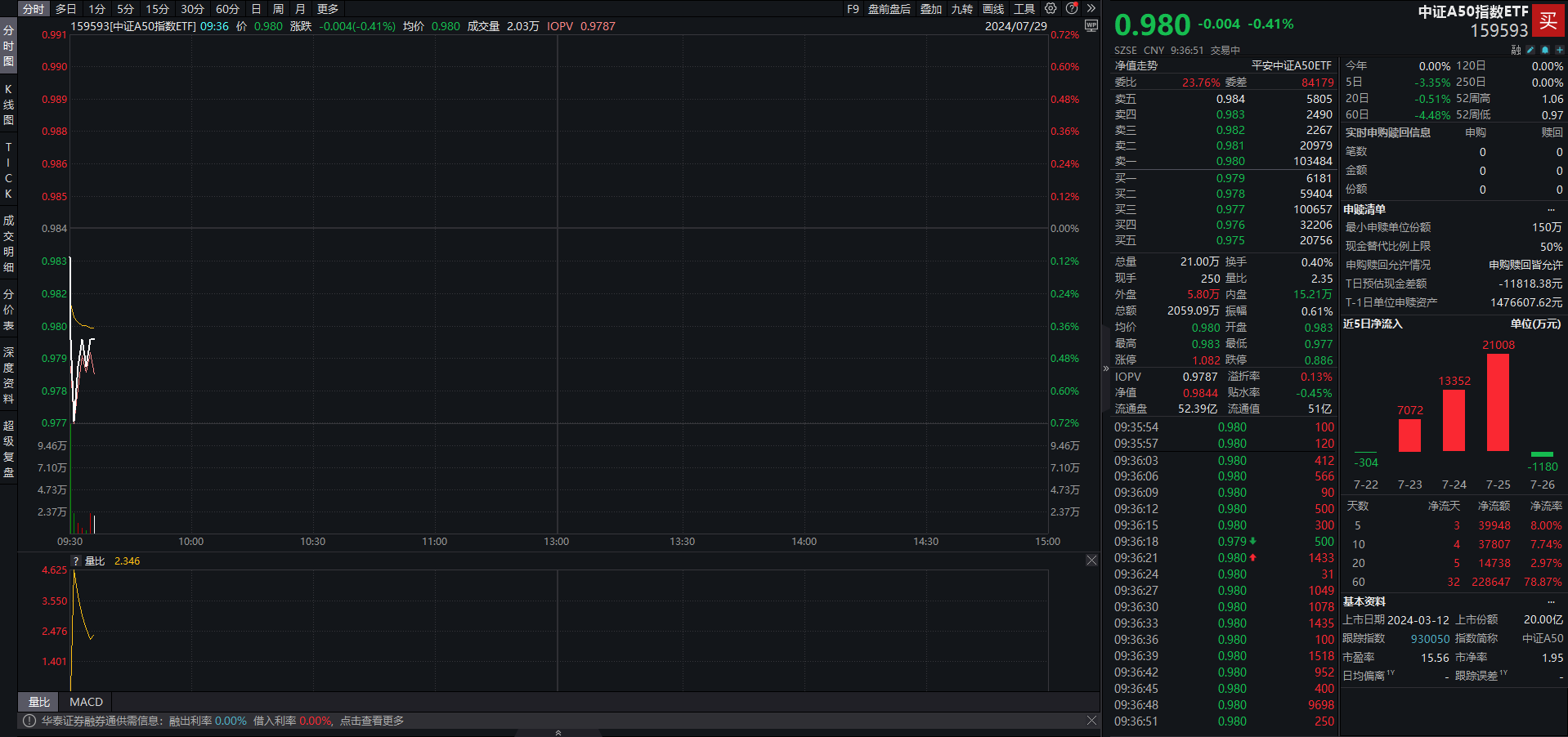 目前该ETF成交额已超2000万元,溢折率为0.13%,盘中溢价交易明显。