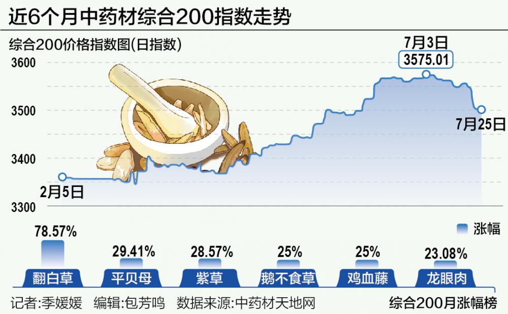多位业内人士表示,进入三季度,中药材流通进入淡季,过热氛围或将降温。但三季度也是高温干旱和洪涝雨水的多发季,若相关中药材有受灾减产的情况发生,那行情还会向上提升。