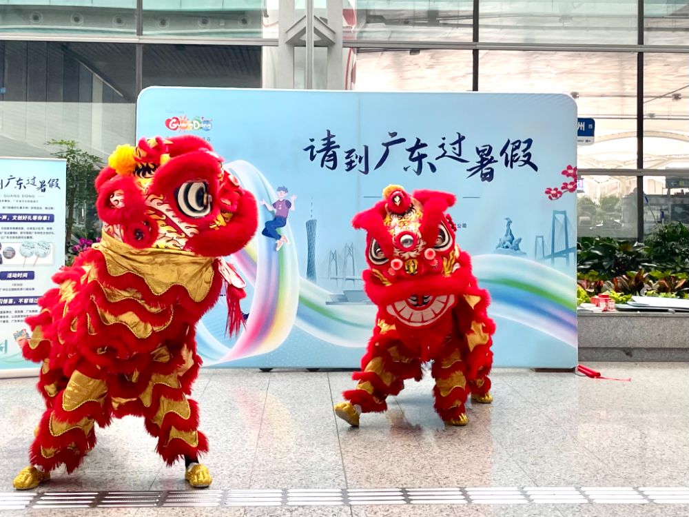 7月30日,广东省文化和旅游厅在广州白云国际机场举办“请到广东过暑假”非遗快闪活动,向来自全球的旅客展示了岭南文化的独特魅力。活动在白云机场二号航站楼的出发厅拉开序幕,以锣鼓声和岭南狮舞的热烈表演,迎接来自世界各地的旅客。