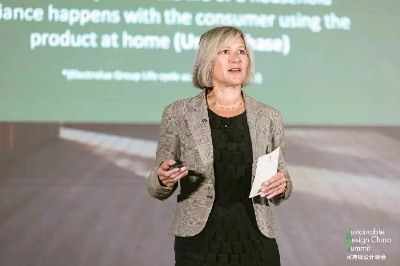 Sarah Schaefer首先向与会嘉宾介绍伊莱克斯集团与品牌。她指出,伊莱克斯作为可持续发展的行业的先行者和领导者,自90年代起便是全球家电行业首家以可持续发展为战略重点的公司,致力于通过其解决方案和卓越运营,引领社会可持续发展的潮流。“2022年,伊莱克斯集团作为全球前100家设定基于科学测算的气候目标的企业,提前三年实现了2025年阶段性气候目标——运营过程中直接和间接产生的碳排放在8年内减少了82%,助力实现巴黎气候协定。”她举例说道。