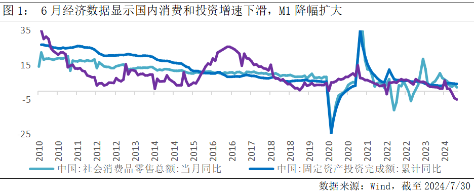 根据近期的货币政策和财政政策,“扩内需”的决心已经展现。货币政策方面,央行于7月22日下调OMO、LPR,通过降息促进经济复苏。财政政策方面,国家发展改革委、财政部7月25日印发《关于加力支持大规模设备更新和消费品以旧换新的若干措施》,提出统筹安排3000亿元左右超长期特别国债资金,加力支持大规模设备更新和消费品以旧换新,从投资和消费两方面共同促进经济复苏。